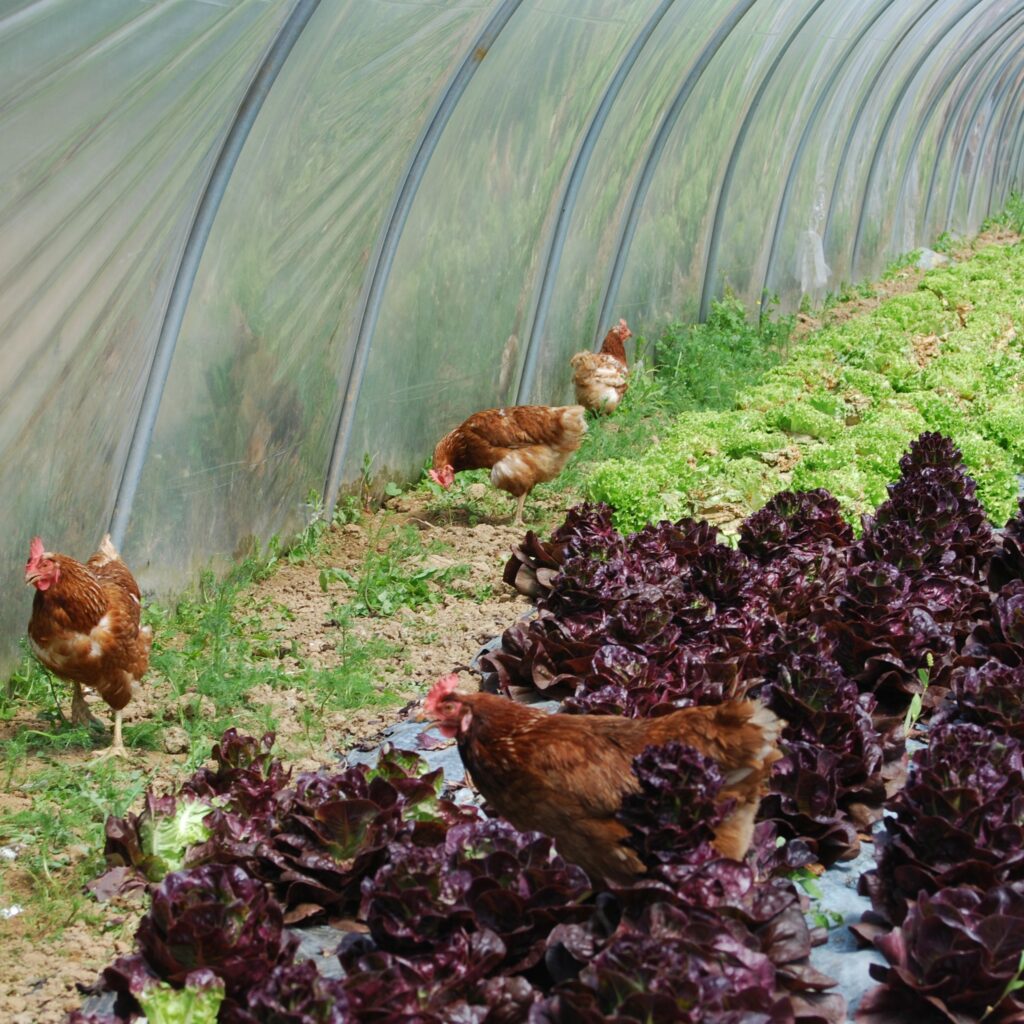 Nous cultivons des légumes toute l’année, au rythme des saisons, sans engrais chimiques ni pesticides, en prenant soin des sols et du vivant. La ferme accueille aussi des poules pondeuses, des fruits et des plantes aromatiques.