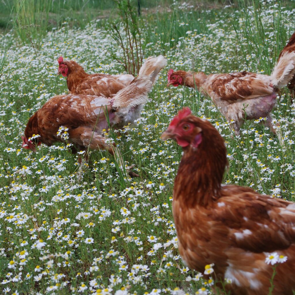 Depuis ses débuts, la ferme des Jardins de Priape s’est bien agrandie, tout d’abord avec l’arrivée d’un petit élevage de poules pondeuses. Deux raisons à ce choix :